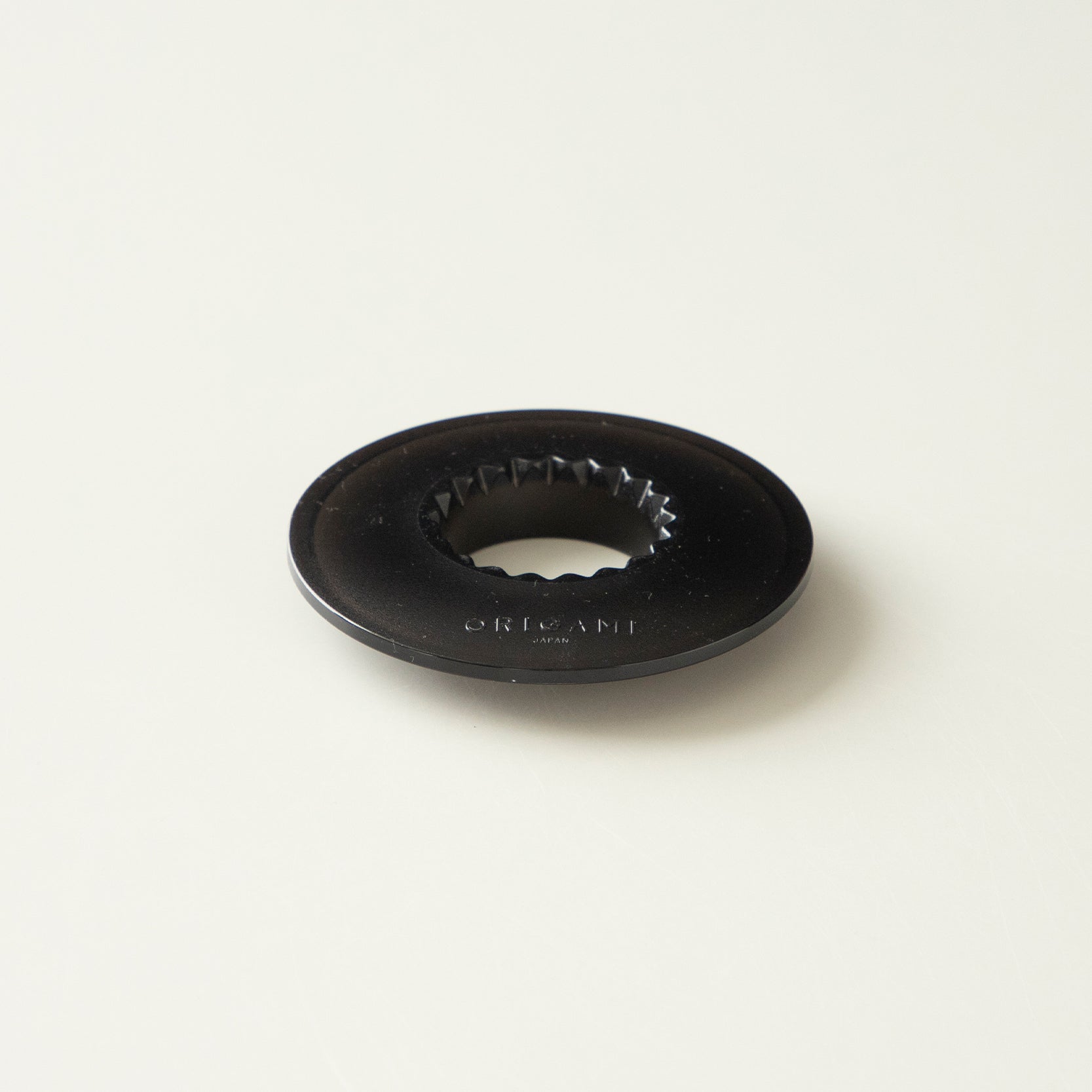 This is a special plastic holder designed to fit both ORIGAMI Dripper S and M sizes. It is designed to fit the 20 grooves on the dripper and keeps the dripper horizontal for more stable coffee extraction.