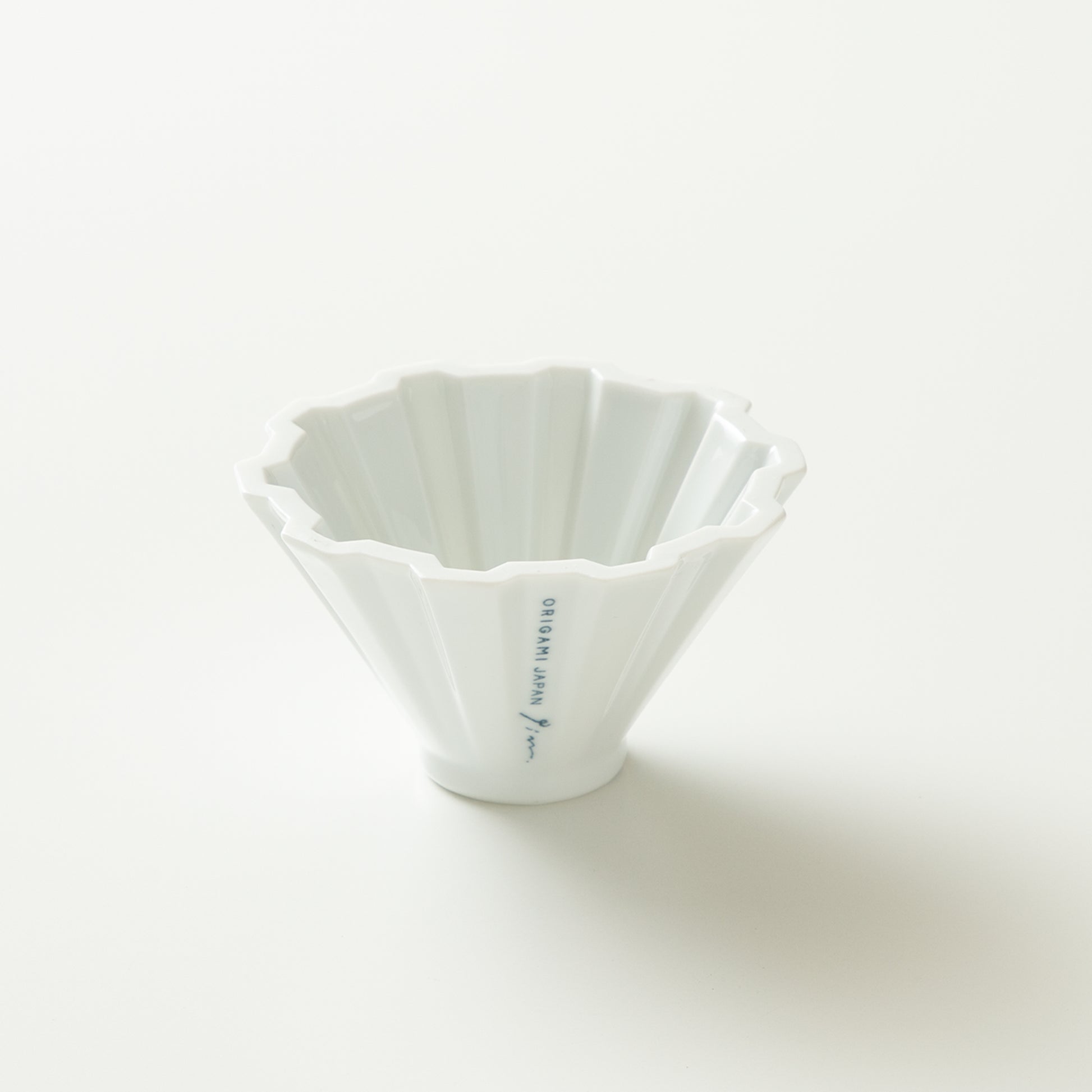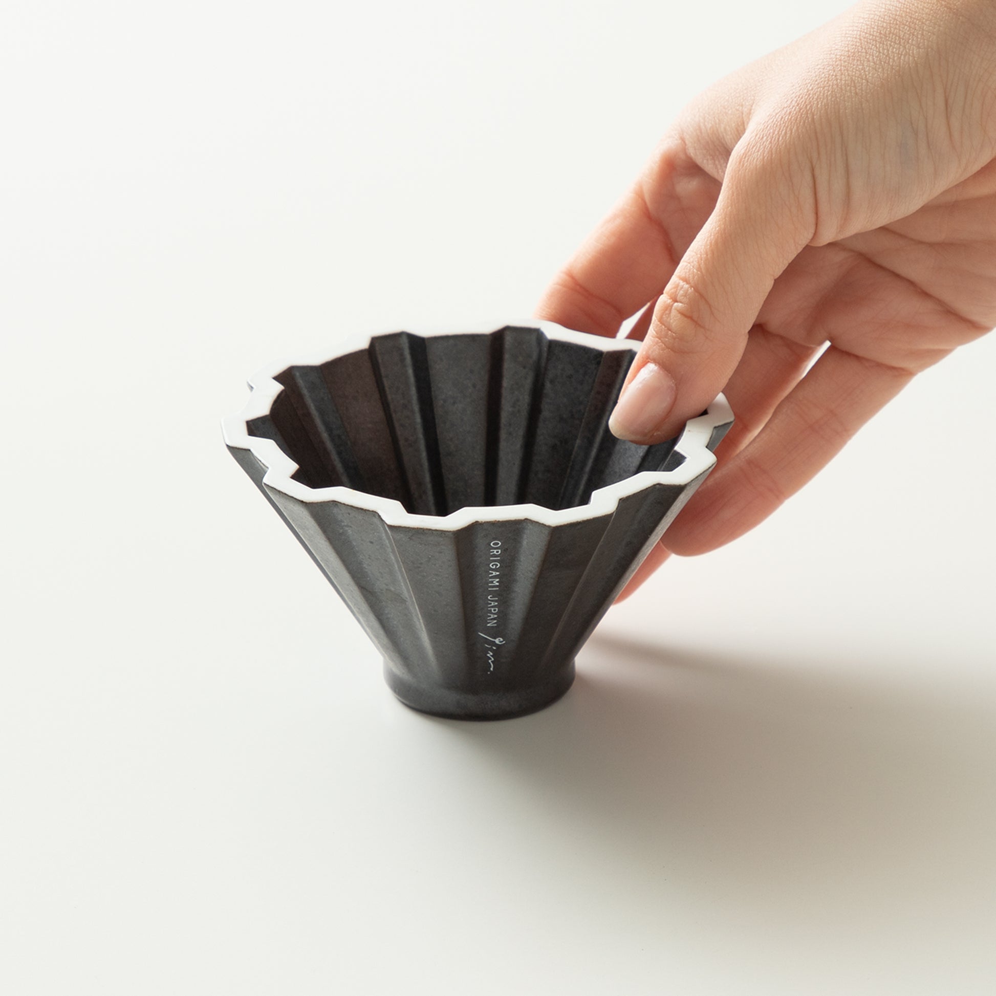 ドリッパー本体は、従来のORIGAMI ドリッパーよりも肉厚な設計。抽出前半ではお湯によるドリッパーの温度上昇は緩やかに、過度なエネルギーを与えすぎず、抽出後半には、磁器素材とその厚みにより保温率が高まり、温度が緩やかに低下。さらに高さを6cmに抑えたコンパクトな形状により、ケトルのノズルの高さを自在にコントロールすることが可能。